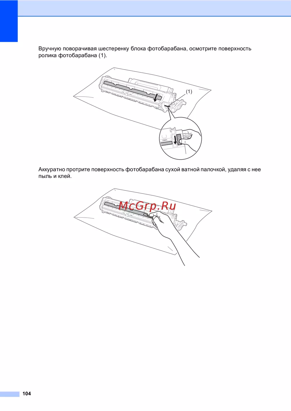 Аккуратно протрите поверхность фотобарабана сухой ватной палочкой, удаляя с нее