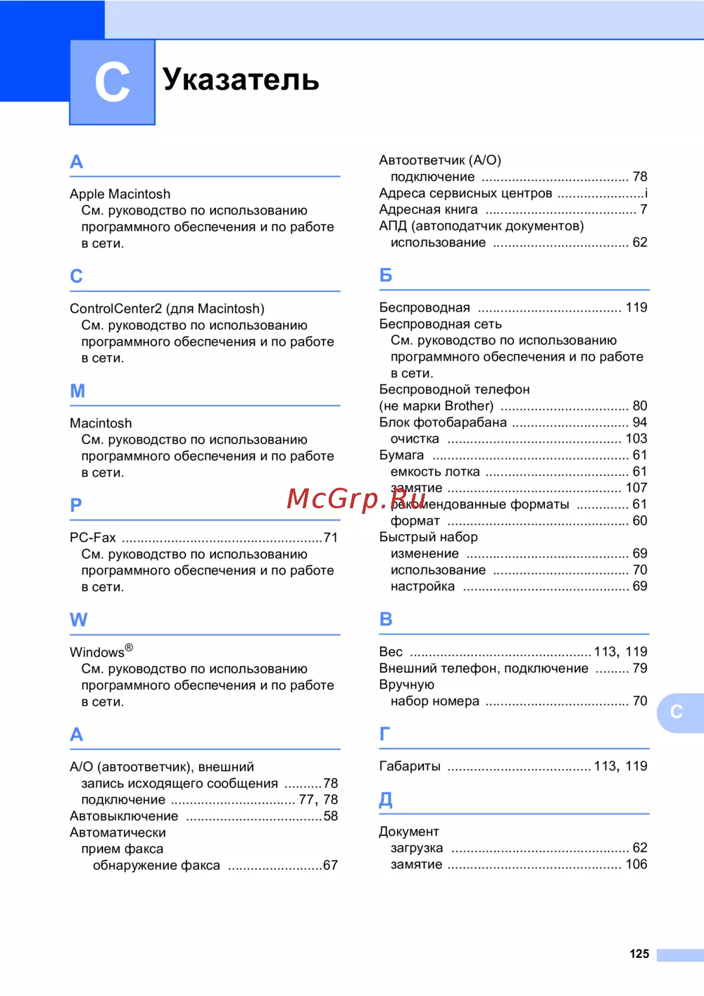 - Неполадки связанные с телефоном и факсом модели mfc p.108