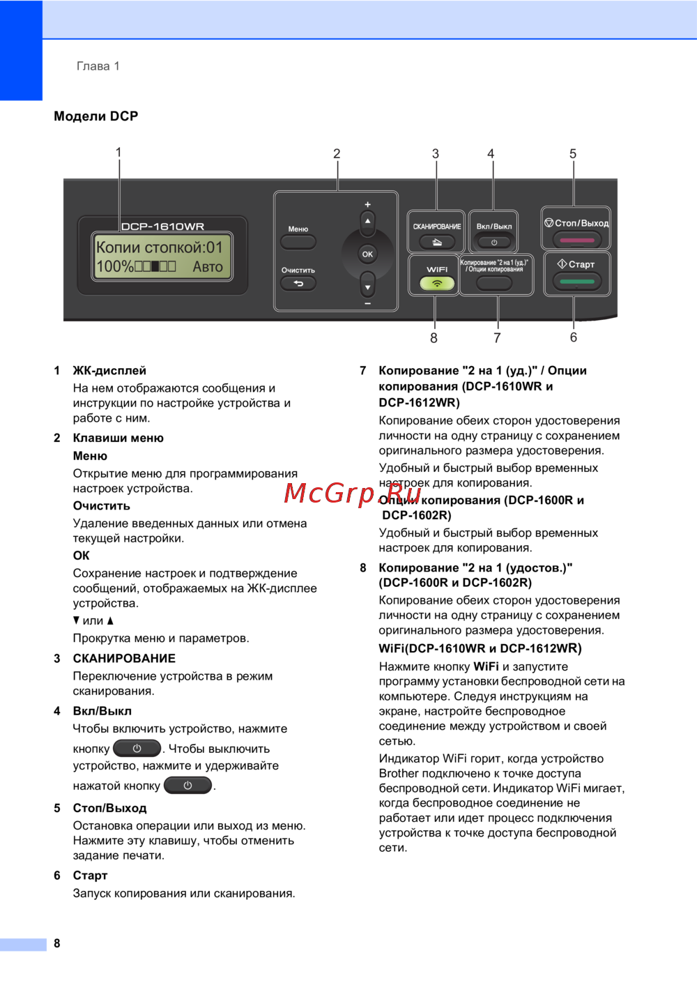 - Руководство пользователя dcp 1600r dcp 1602r dcp 1610wr dcp 1612wr mfc 1900r mfc 1905r mfc 1912wr p.1