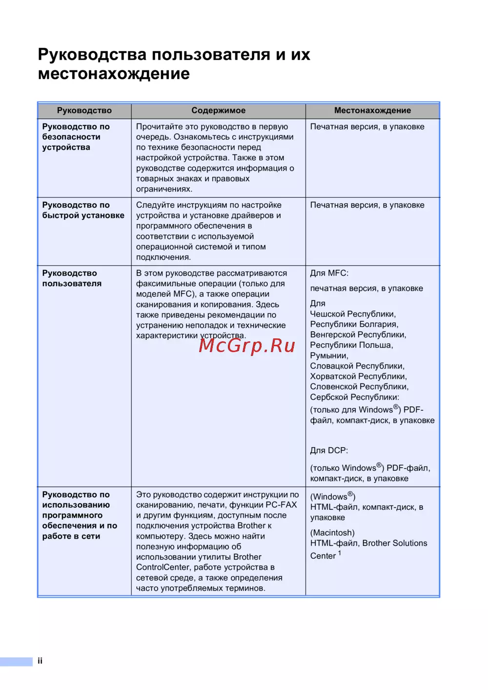 - Руководство пользователя dcp 1600r dcp 1602r dcp 1610wr dcp 1612wr mfc 1900r mfc 1905r mfc 1912wr p.1