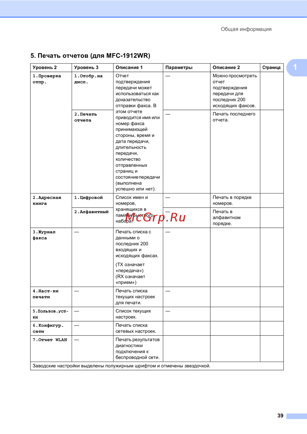 Brother DCP1623WR [48/137] Печать отчетов для mfc 1912wr