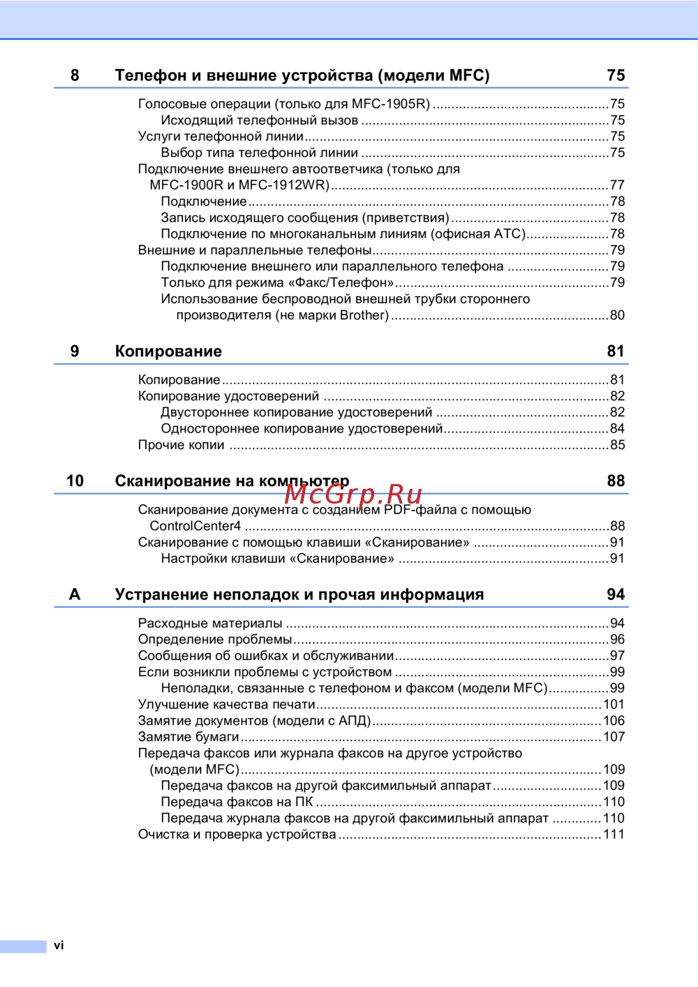 - Неполадки связанные с телефоном и факсом модели mfc p.108