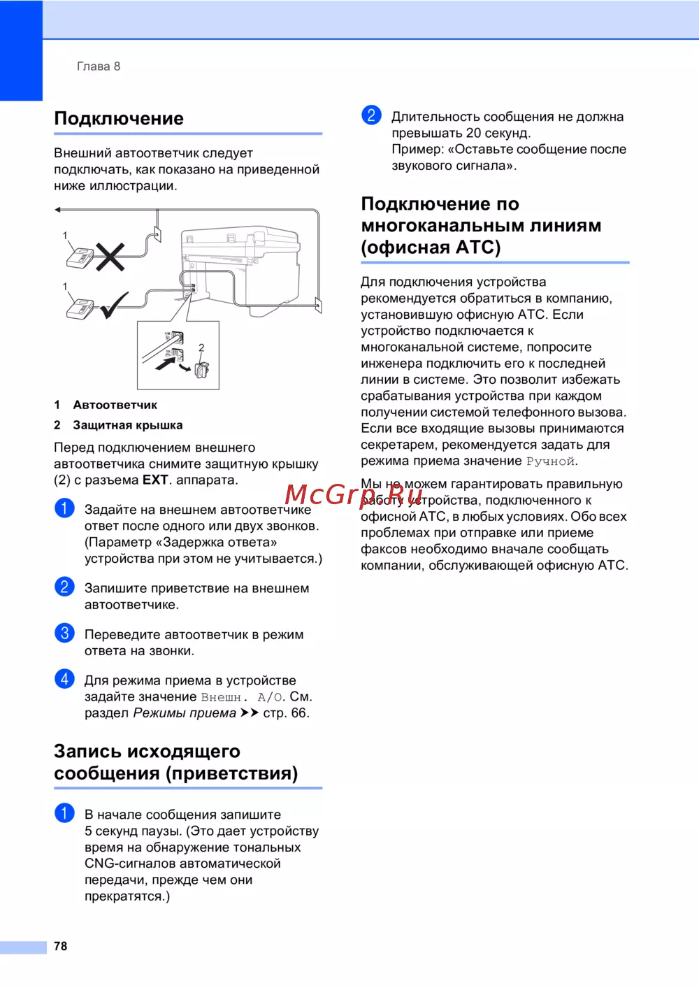 Brother DCP1623WR — подключение внешнего автоответчика: пошаговая инструкция [87/137]