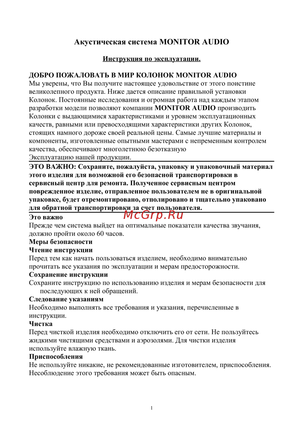 Monitor Audio Gold Reference C RРуководство по эксплуатации -