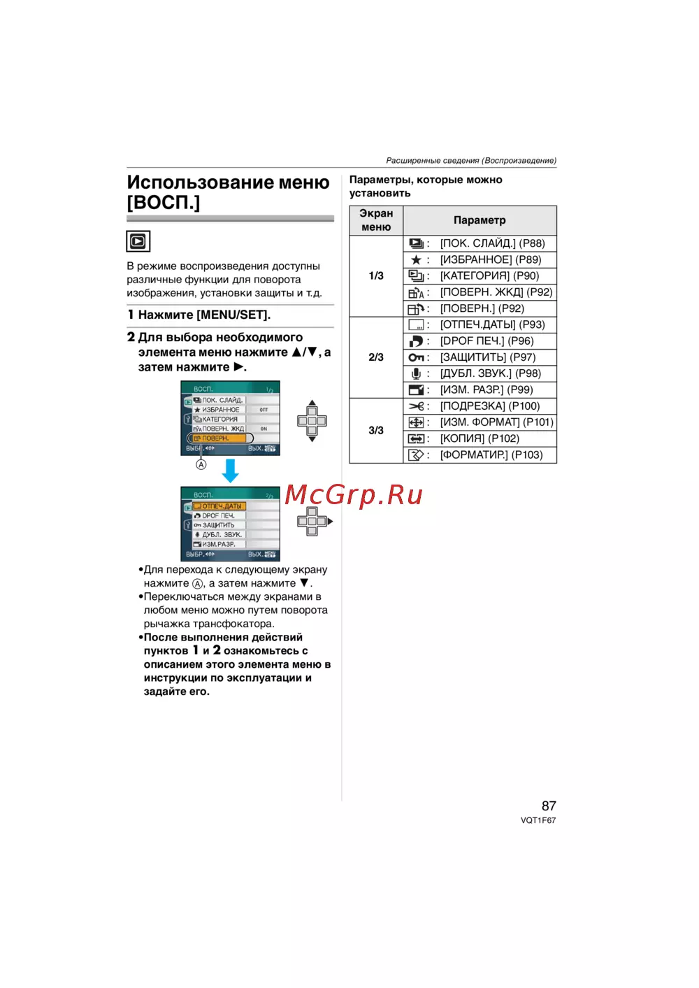 Panasonic DMC-FX100EEN Metal — функции меню воспроизведения: управление изображениями и настройками [87/167]