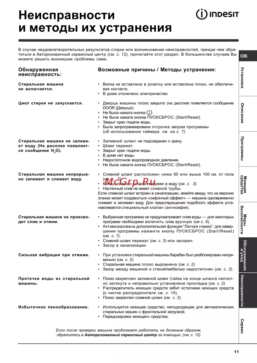 Indesit WISE 10 CSI — решение неисправностей стиральной машины: советы и рекомендации [11/12]