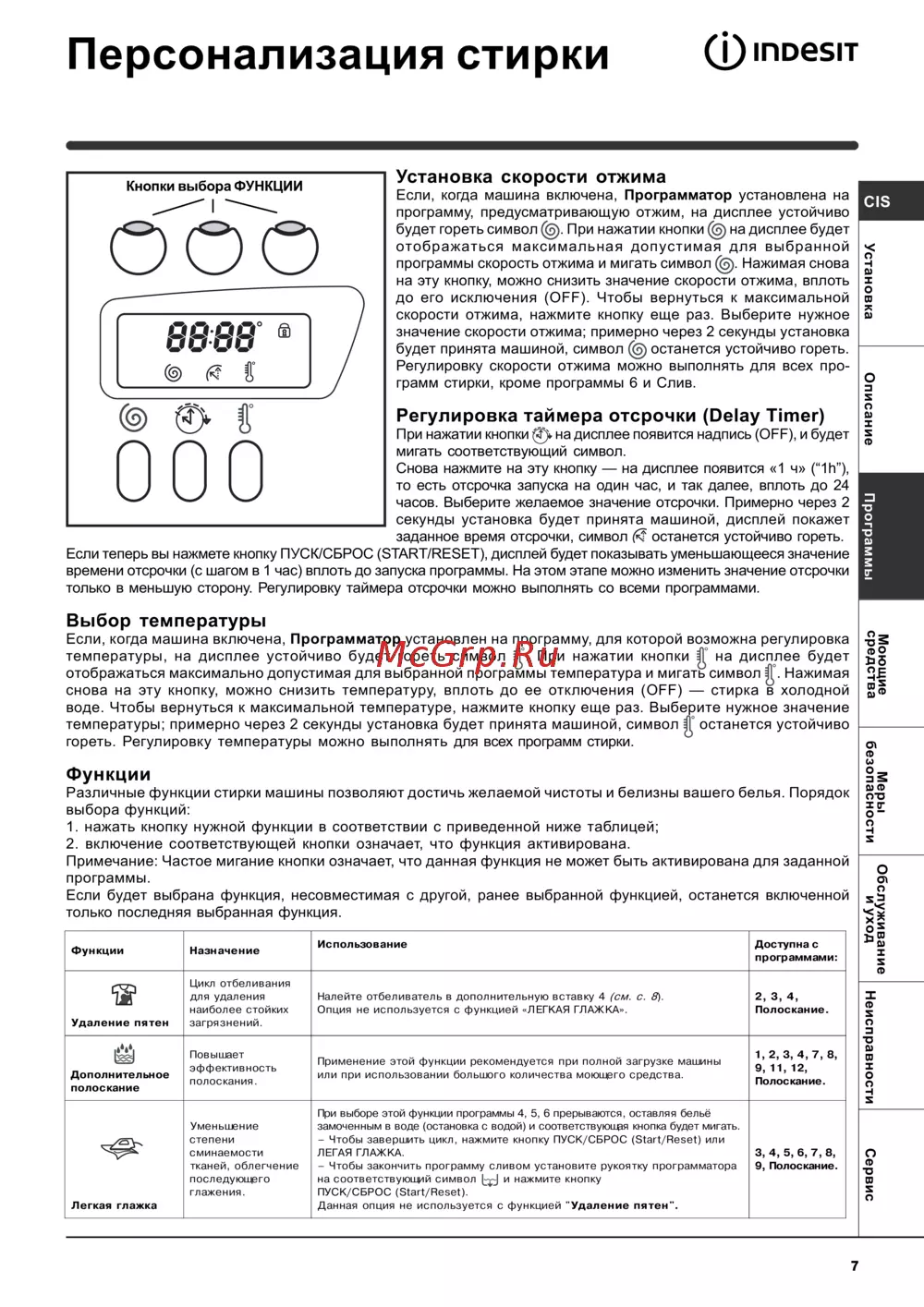 ![Indesit WISE 10 [7/12] Выбор температуры](/views2/1005328/page7/bg7.png)