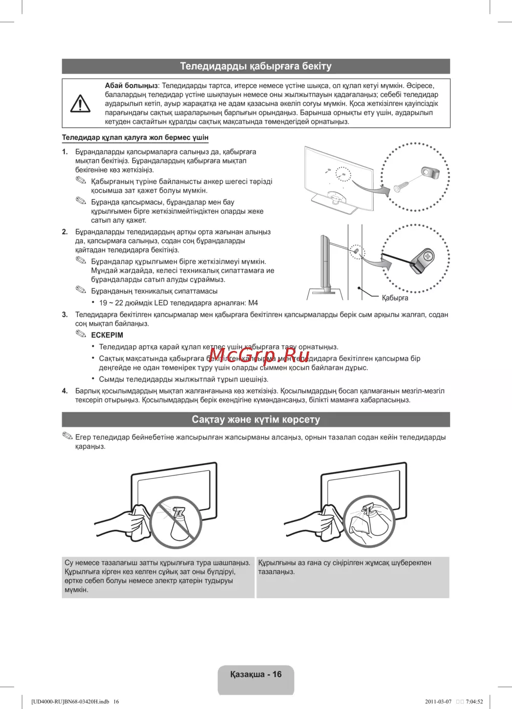 Samsung UE19 D4020NW — теледидарды қабырғаға бекіту: қауіпсіздік шаралары [48/49]