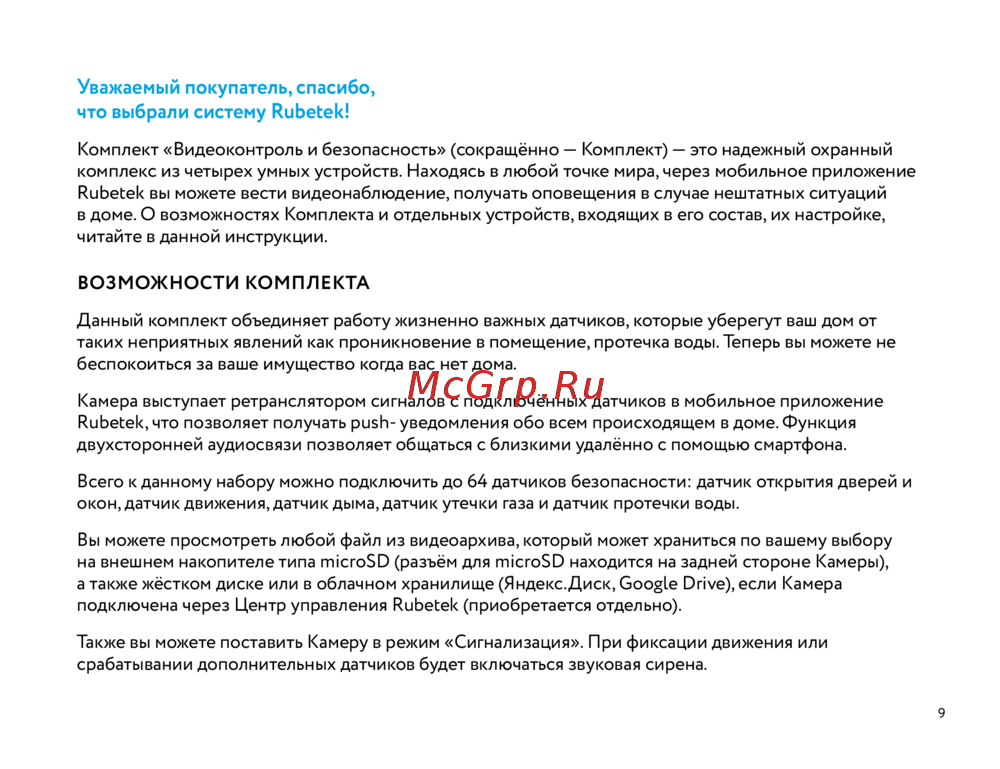 - Уважаемый покупатель спасибо что выбрали систему rubetek p.9