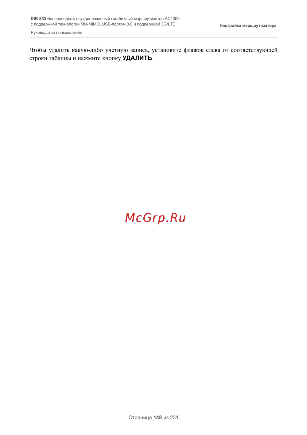 D-Link DIR-853/ACR/A1A [148/231] Чтобы удалить какую либо учетную запись установите флажок слева от соответствующей строки таблицы и нажмите кнопку удалить