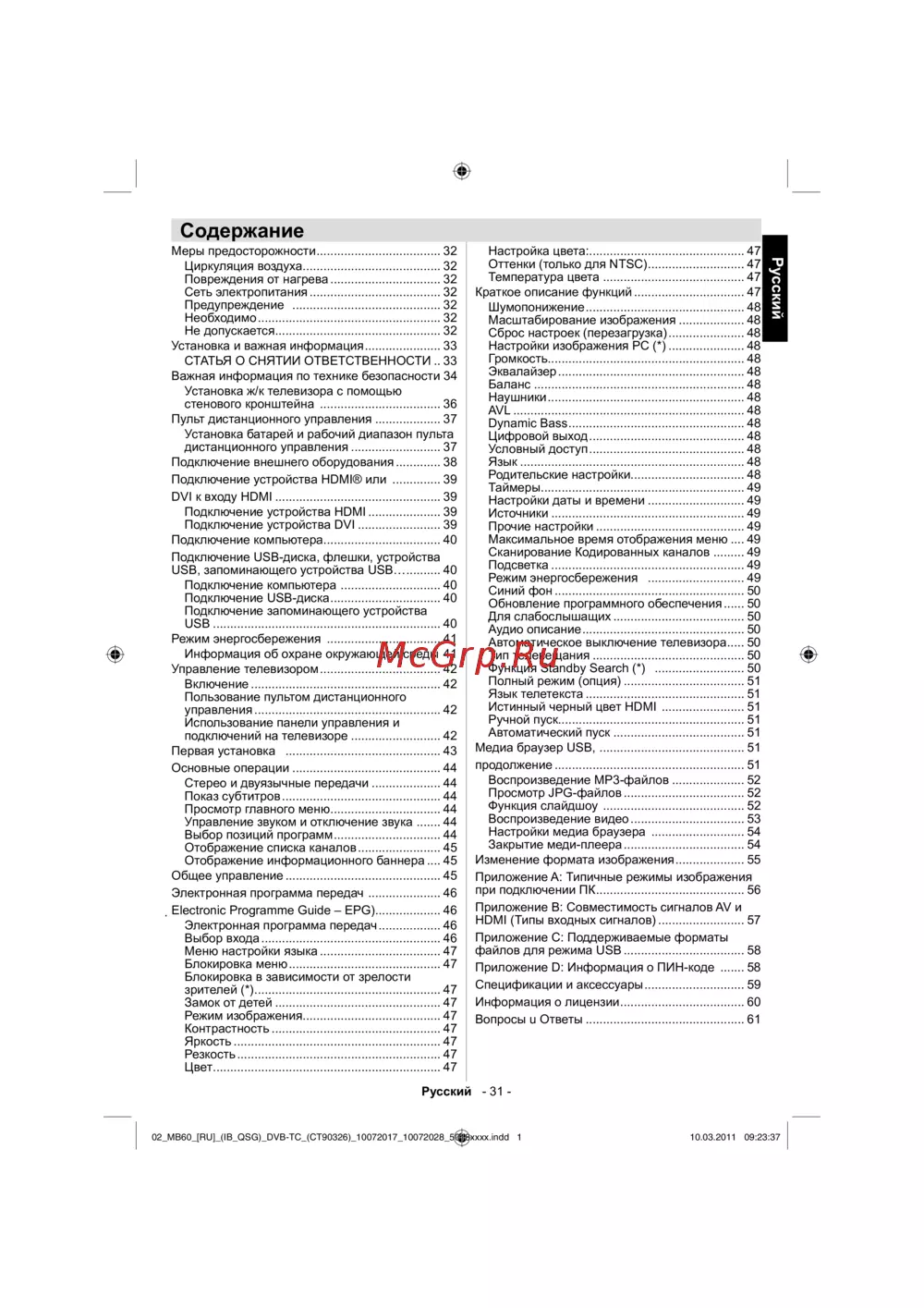 - Произведено по лицензии dolby laboratories долби и двойное d симболы являются торговыми знаками компании dolby laboratories p.30