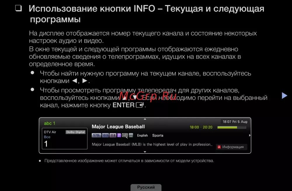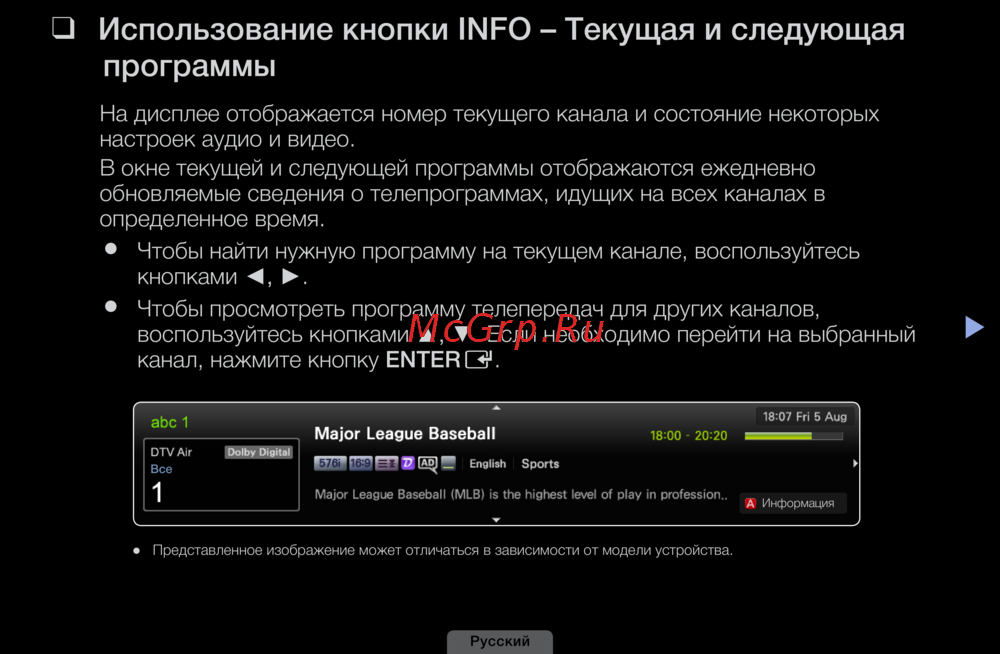Использование❑кнопки❑INFO❑–❑Текущая❑и❑следующая❑