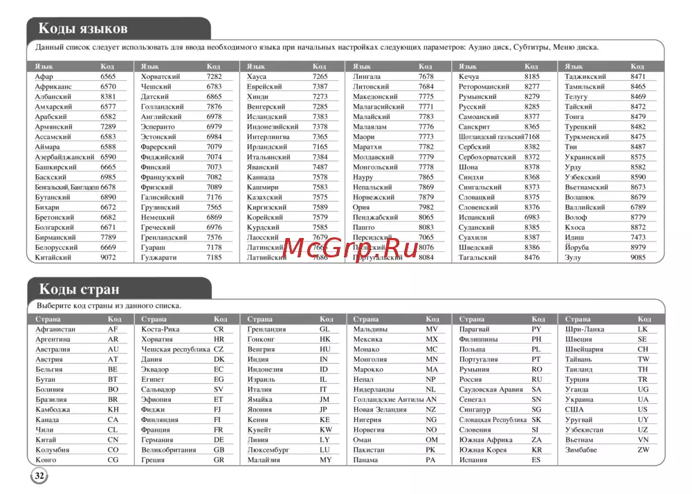 - Коды стран p.32