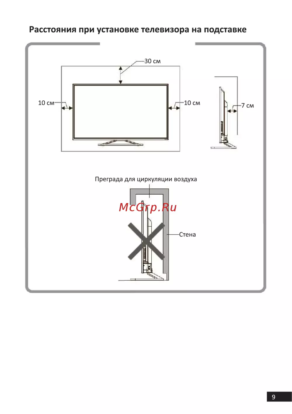Расстояния при установке телевизора на подставке 9