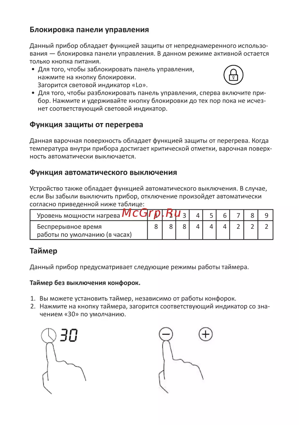 DEXP 3M2CTYL/B — функции защиты и таймеры для варочной поверхности [10/16]
