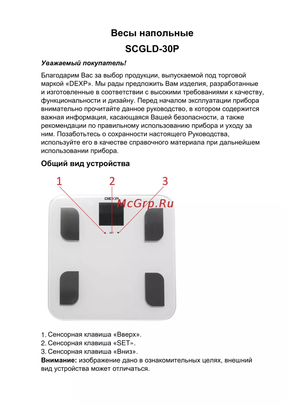 DEXP SCGLD-30P — напольные весы: руководство по эксплуатации и безопасности [2/8]