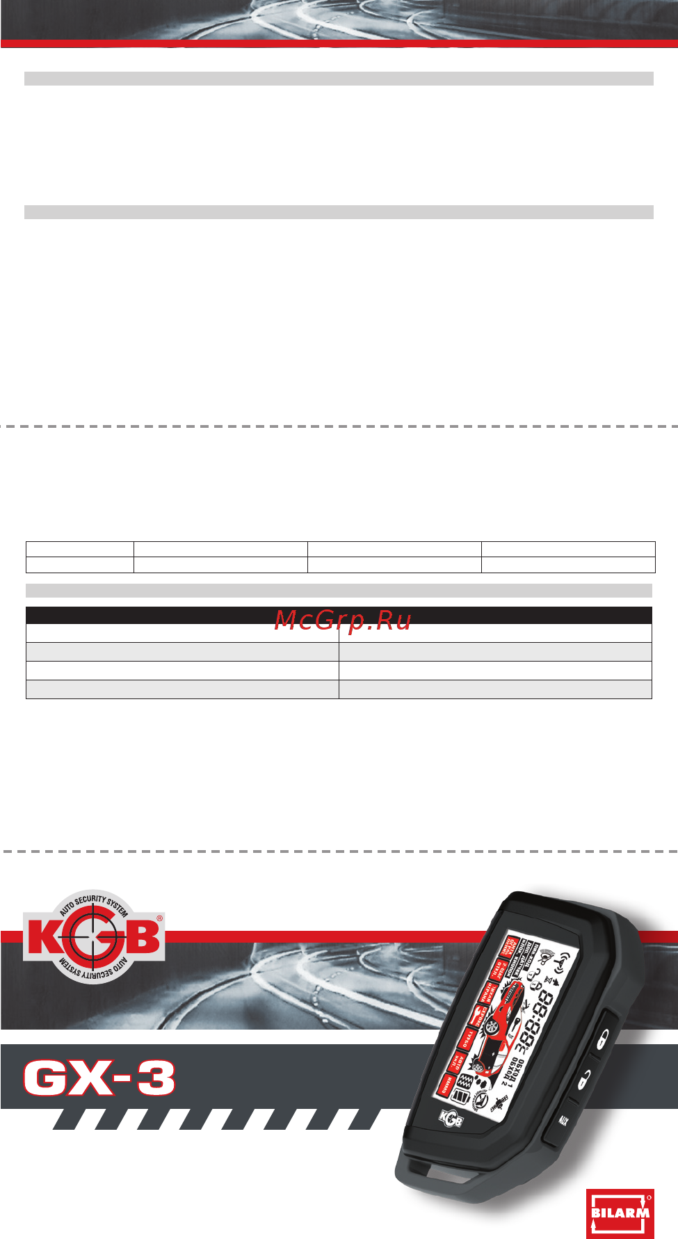 KGB GX-3Вкладка в инструкцию по установке охранной системы -