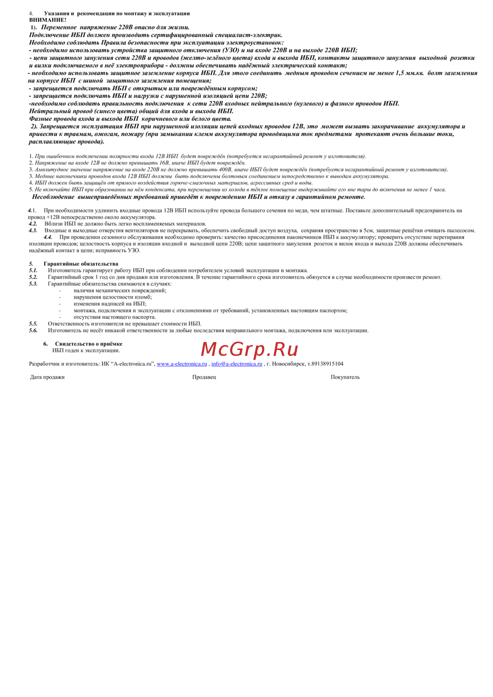 5.5. Ответственность изготовителя не превышает стоимости ИБП.