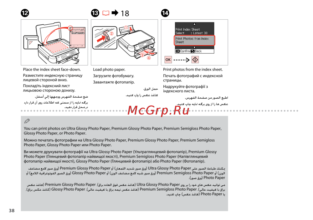 Можно печатать фотографии на Ultra Glossy Photo Paper, Premium Glossy Photo Paper, Premium Semigloss