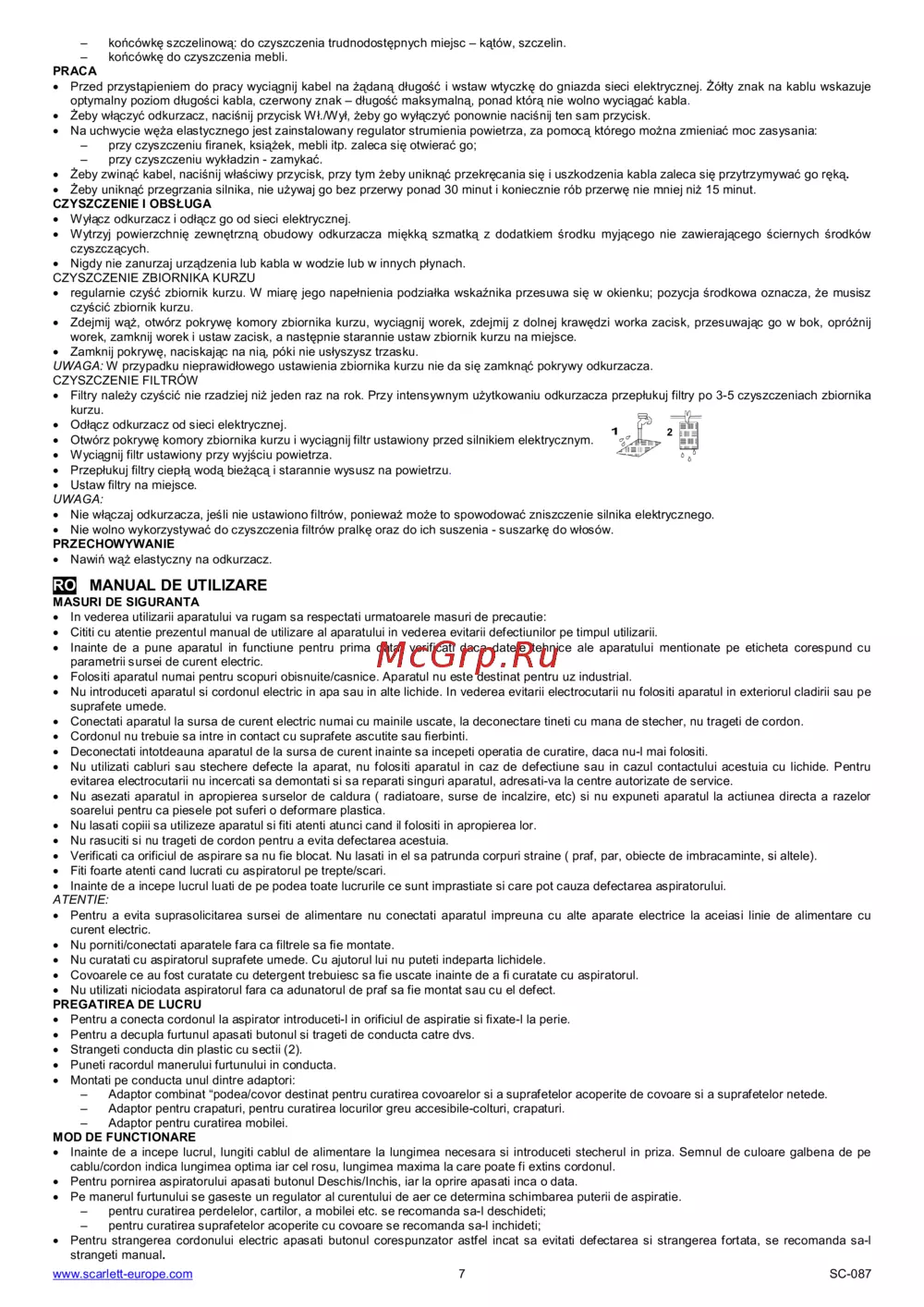 Scarlett SC-087 — instrukcja obsługi odkurzacza: czyszczenie i konserwacja [7/16]
