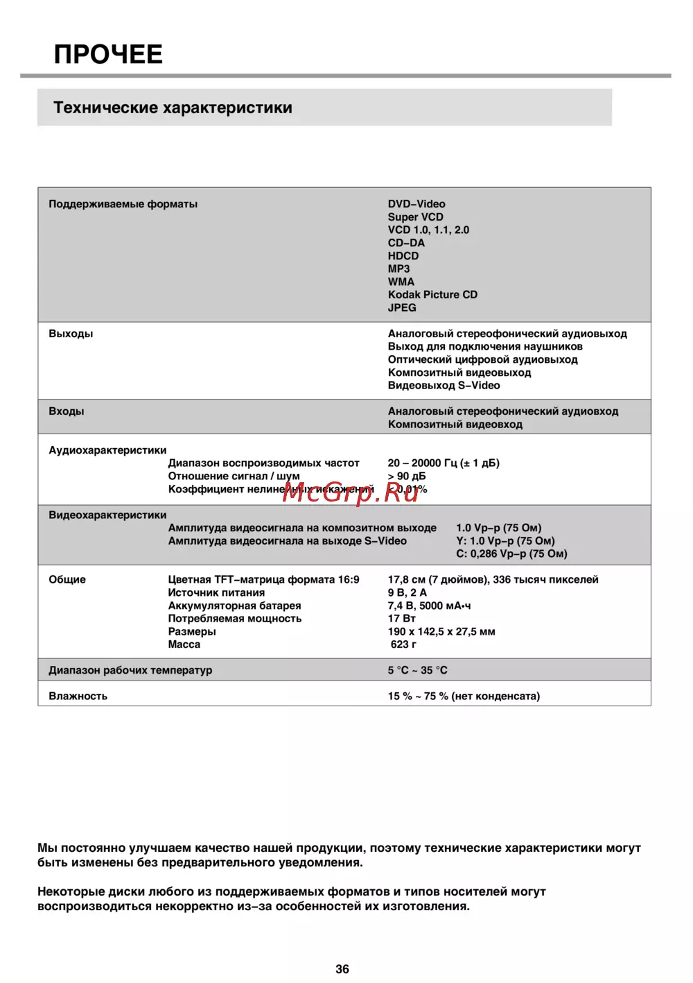 - Некоторые диски любого из поддерживаемых форматов и типов носителей могут воспроизводиться некорректно из за особенностей их изготовления p.39