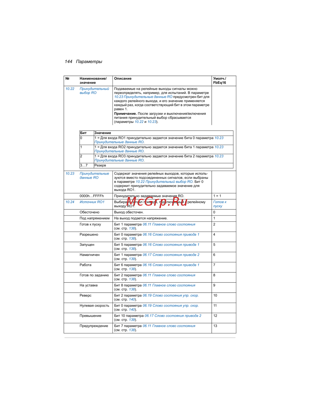 в параметре 10.22 Принудительный выбор RO. Бит 0