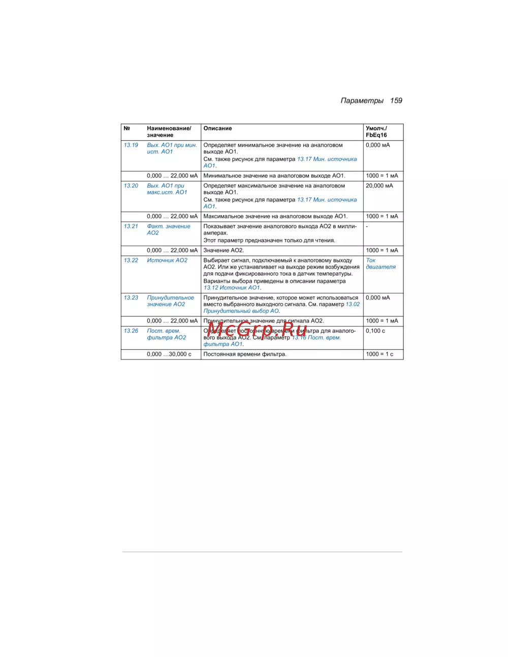 вого выхода AO2. См. параметр 13.16 Пост. врем.