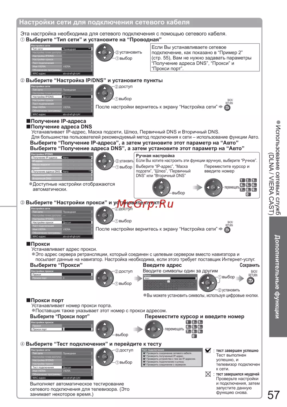 “Получение адреса DNS”, “Прокси” и