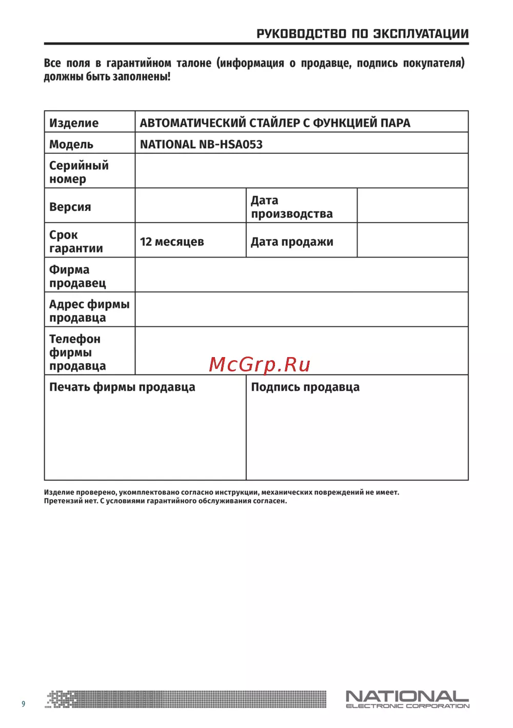 ![NATIONAL NB-HSA053D [9/10] Руководство по эксплуатации](/views2/1563956/page9/bg9.png)