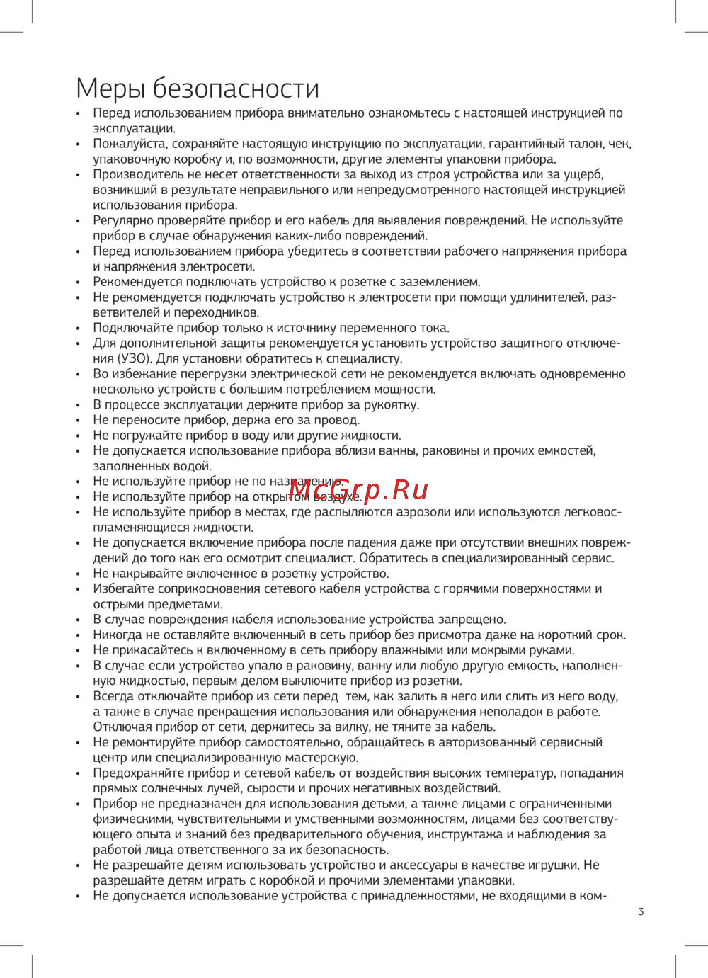 STARWIND SIR8925 — меры безопасности при использовании электрических приборов [3/8]