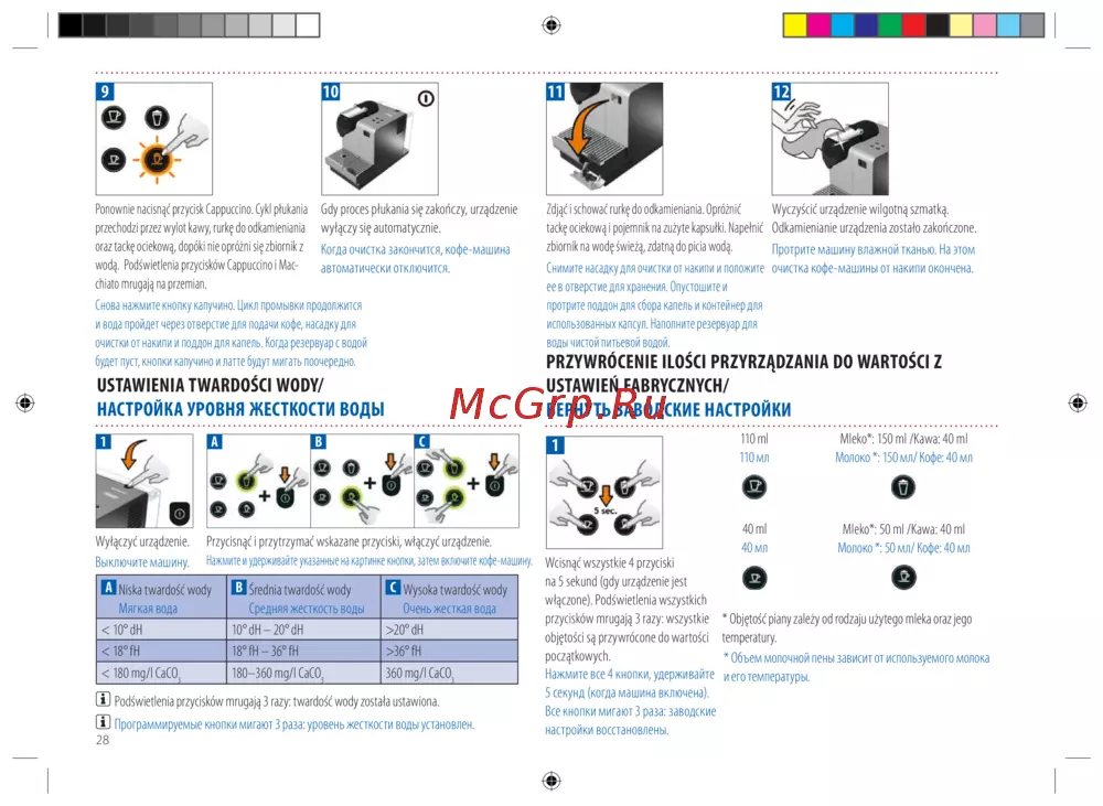 - Przywrócenie ilości przyrządzania do wartości z ustawień fabrycznych p.15