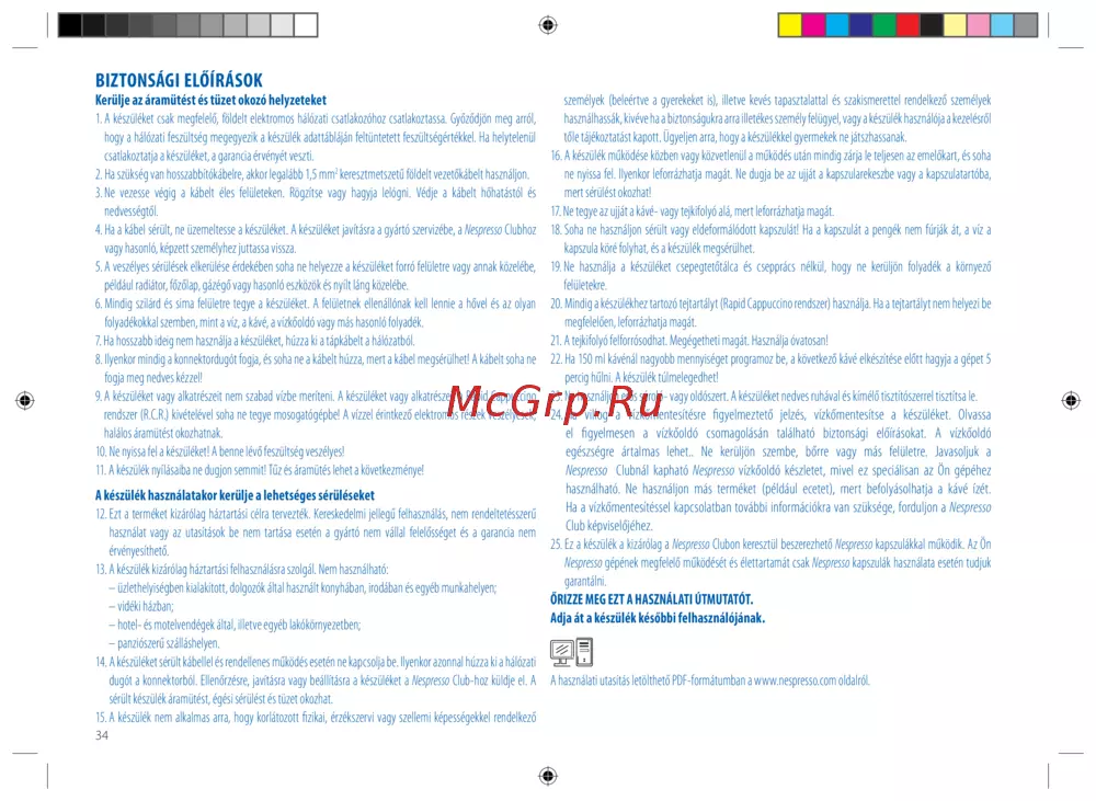 A használati utasítás letölthető PDF-formátumban a www.nespresso.com oldalról.
