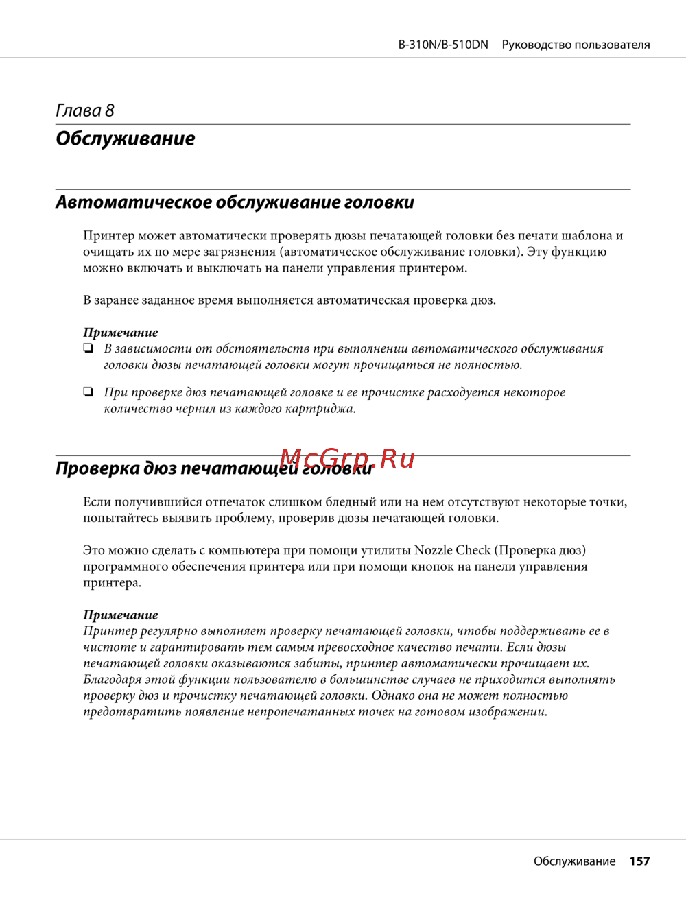Epson B-310N — автоматическое обслуживание головки принтера: проверка и очистка [157/224]