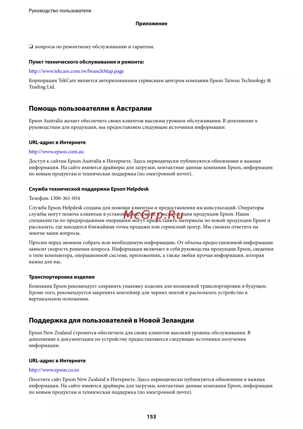 Посетите сайт Epson New Zealand в Интернете. Здесь периодически публикуются обновления и важная