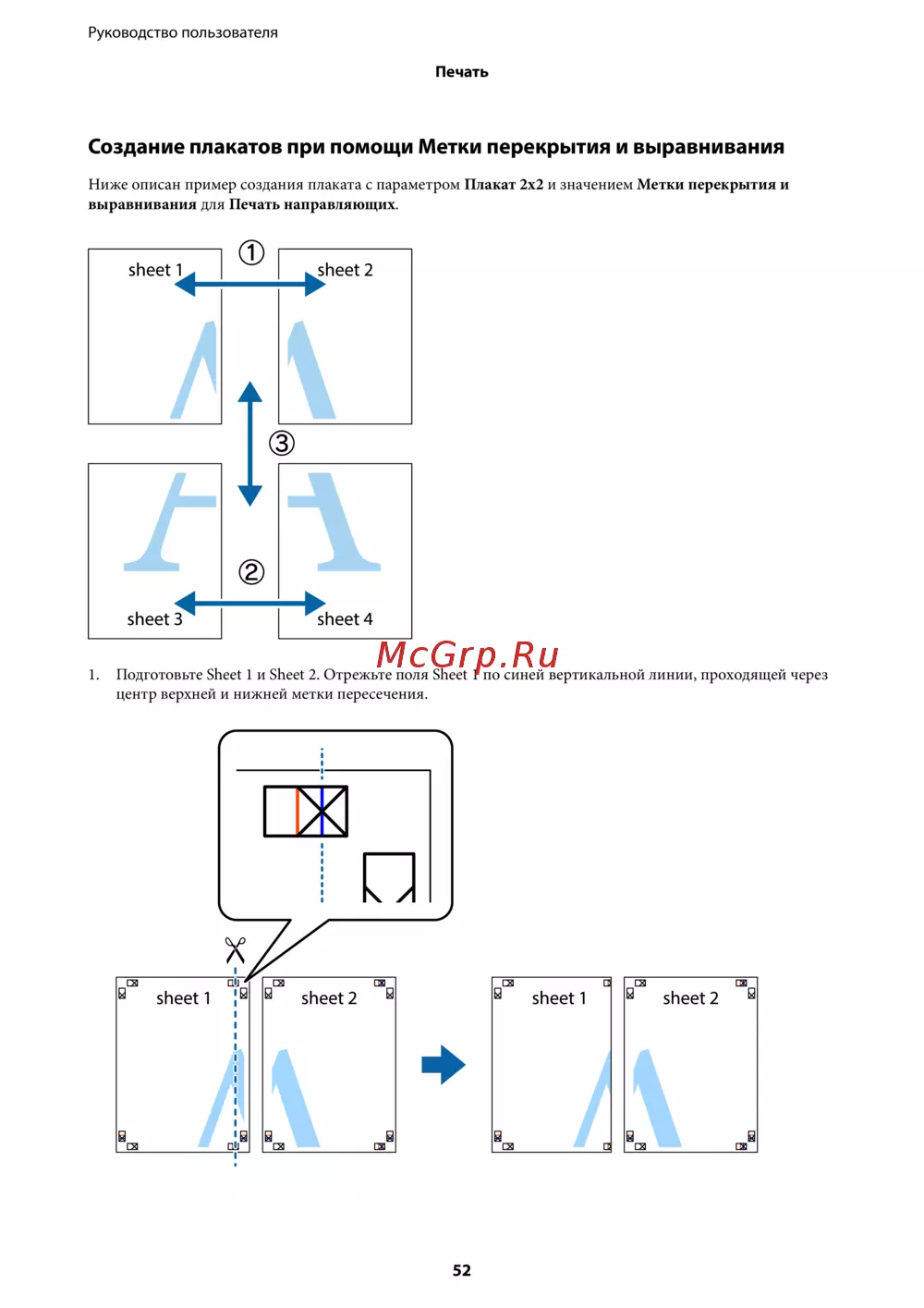Epson L3156 [52/158] Создание плакатов при помощи метки перекрытия и выравнивания