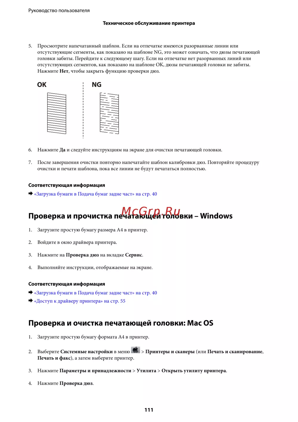 отсутствующих сегментов, как показано на шаблоне OK, дюзы печатающей головки не забиты.