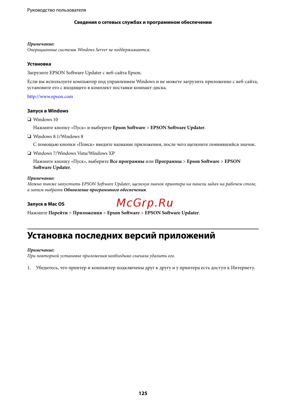 Загрузите EPSON Soware Updater с веб-сайта Epson.