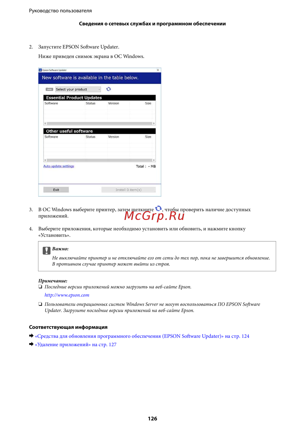 Updater. Загрузите последние версии приложений на веб-сайте Epson.