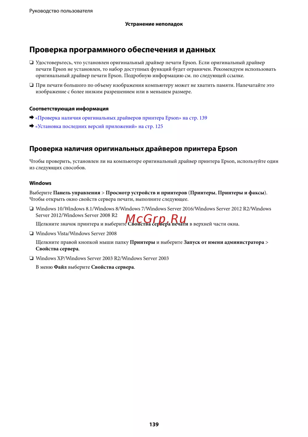 & «Проверка наличия оригинальных драйверов принтера Epson» на стр. 139