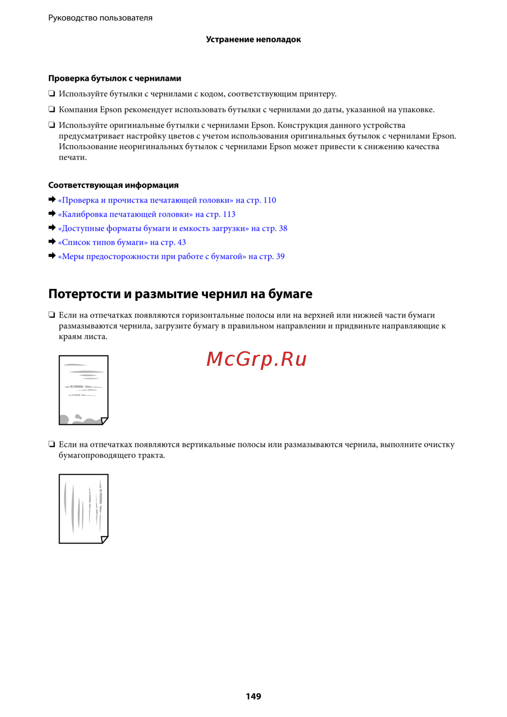 ❏ Если на отпечатках появляются вертикальные полосы или размазываются чернила, выполните очистку