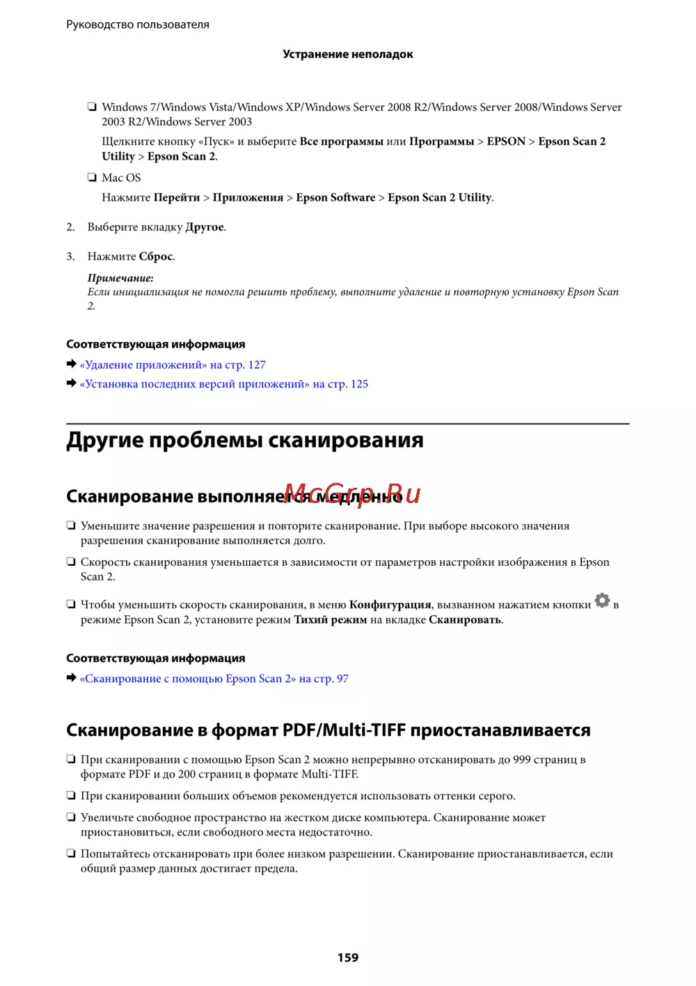 - Сканирование в формат pdf multi tiff приостанавливается p.159