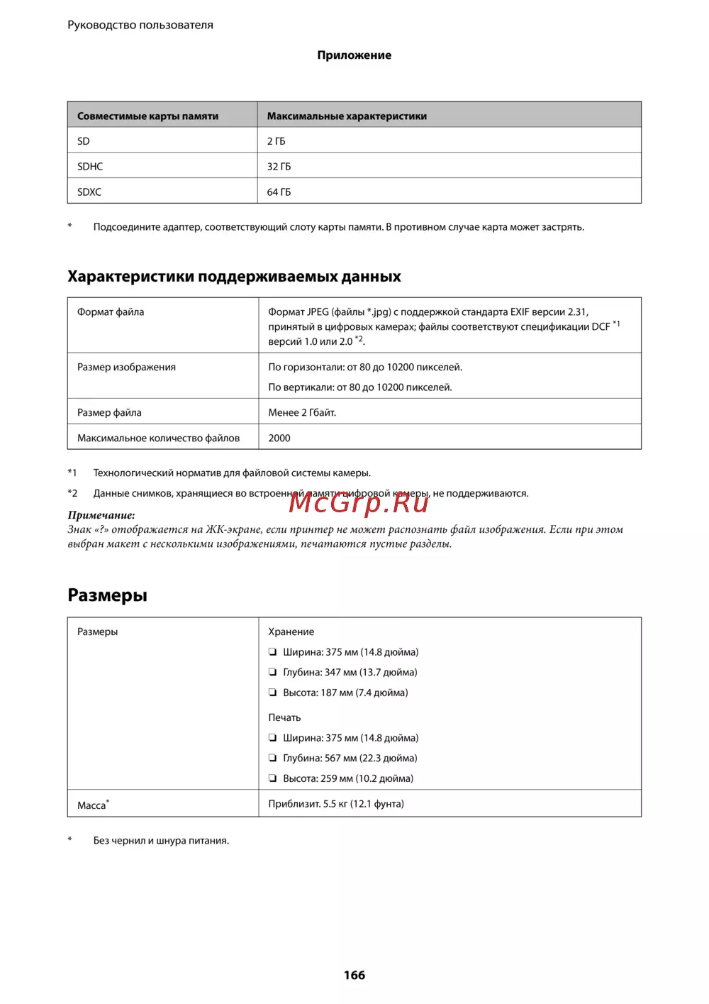Epson L4167 — совместимые карты памяти и их характеристики для цифровых устройств [166/181]