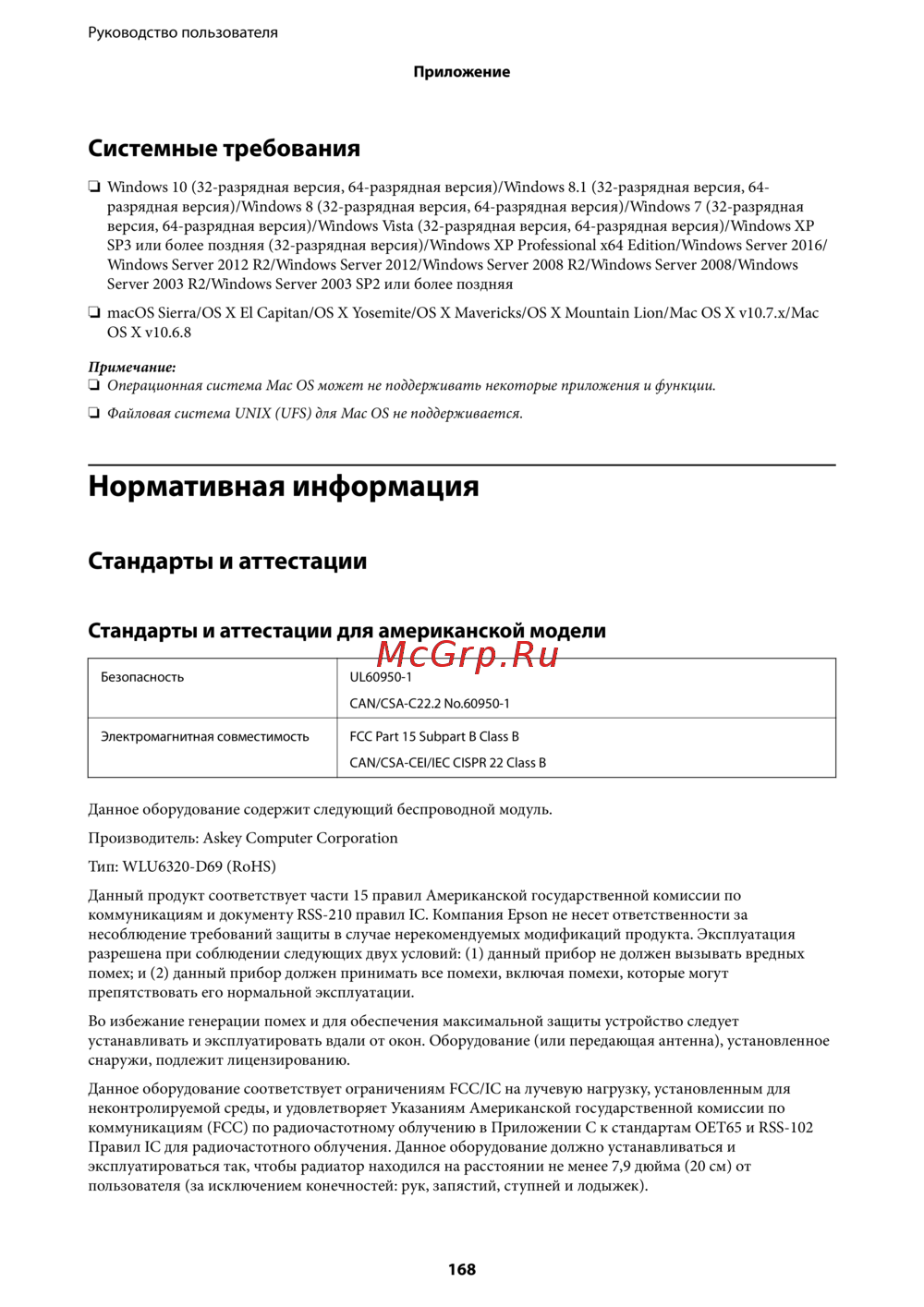 Epson L4167 — системные требования и безопасность для различных операционных систем [168/181]