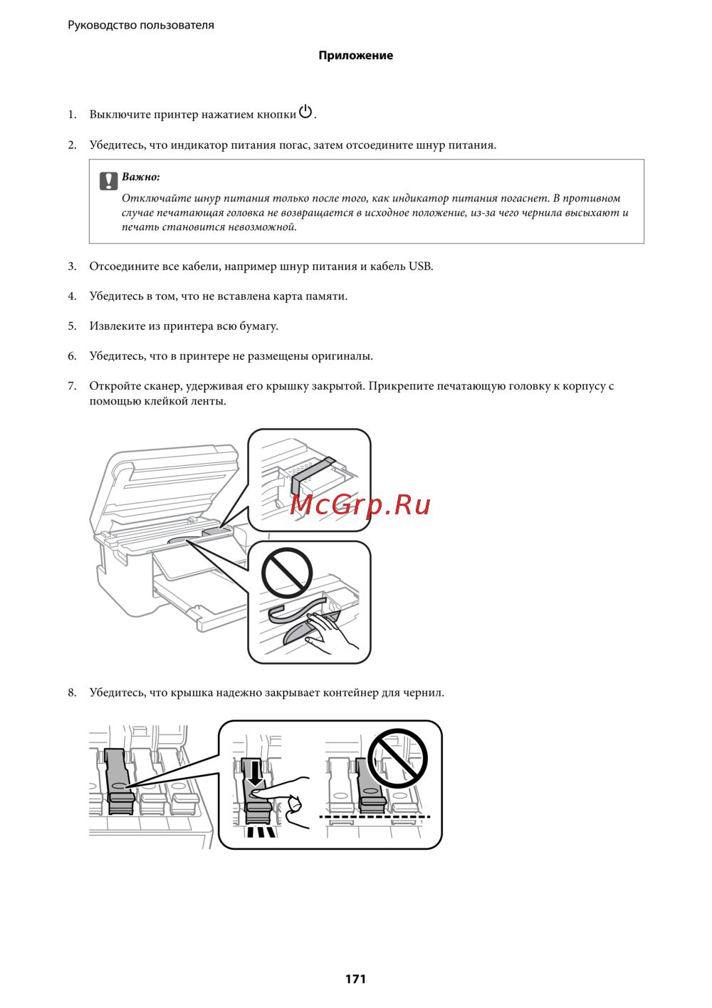 Epson L4167 — как правильно отключить принтер и подготовить к хранению [171/181]