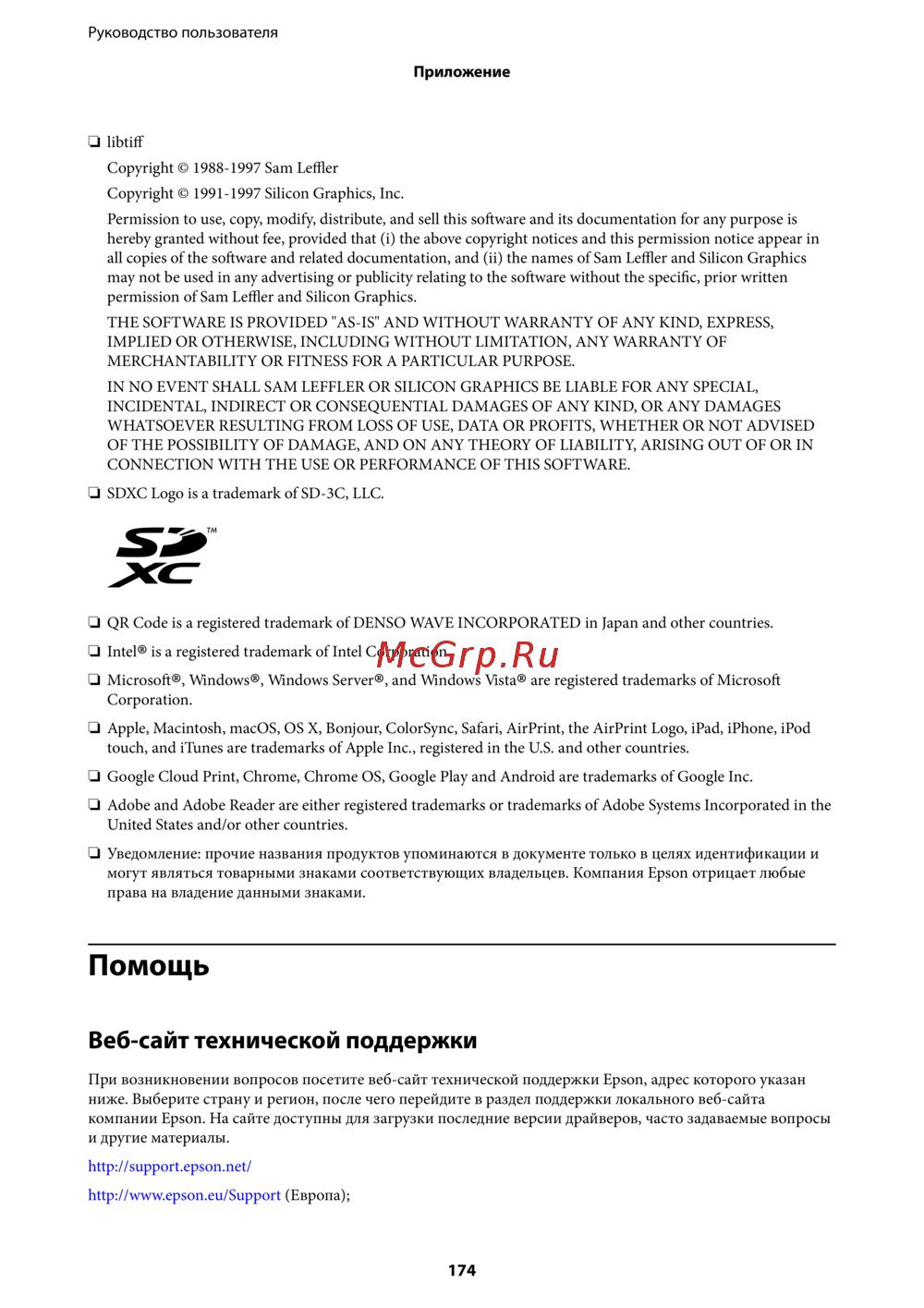 При возникновении вопросов посетите веб-сайт технической поддержки Epson, адрес которого указан