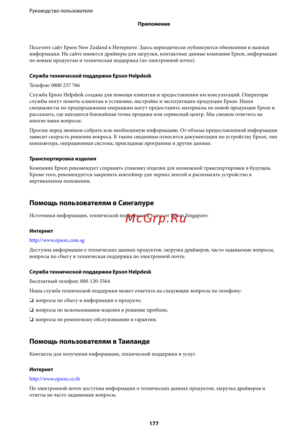 Посетите сайт Epson New Zealand в Интернете. Здесь периодически публикуются обновления и важная