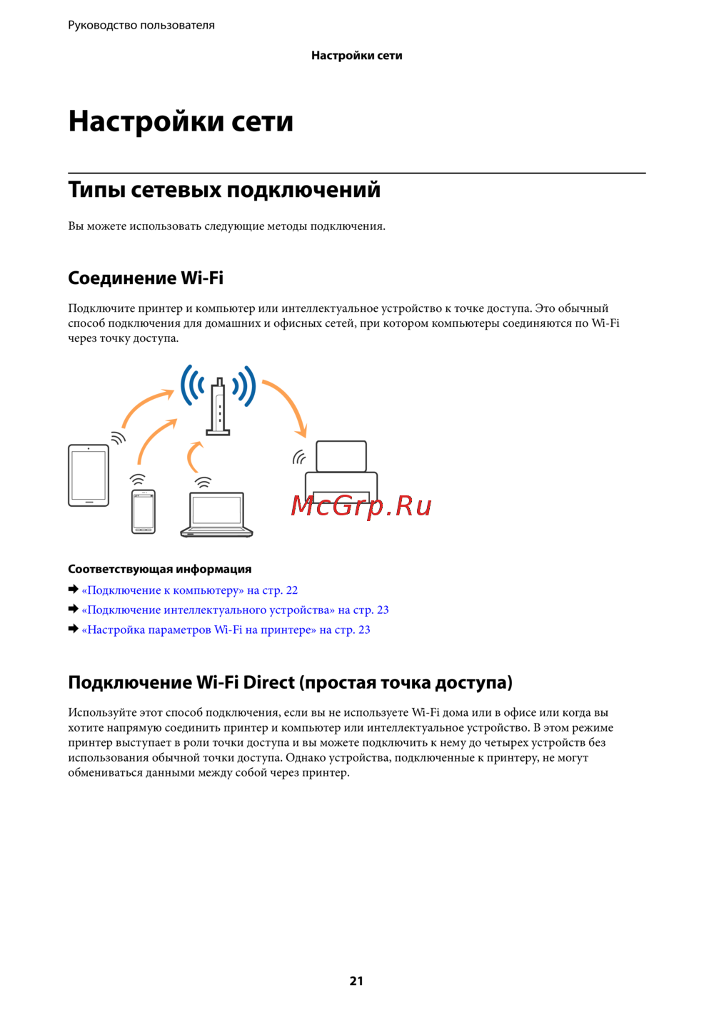 - Настройка параметров wi fi на принтере p.23