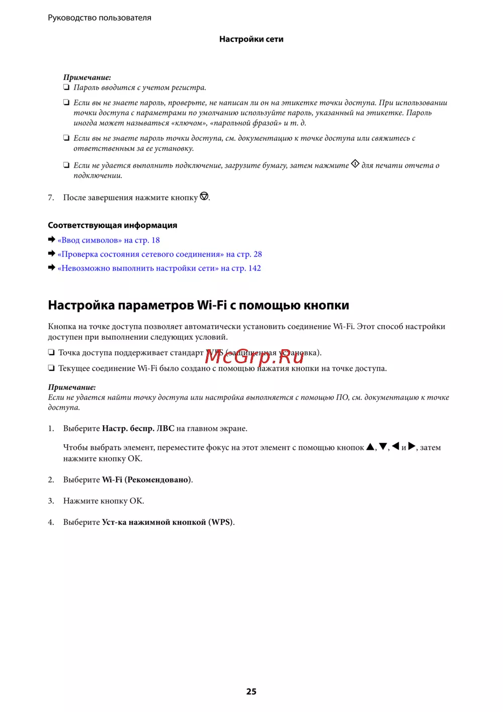 - Для ввода символов при настройке сети с панели управления используйте кнопки p.18
