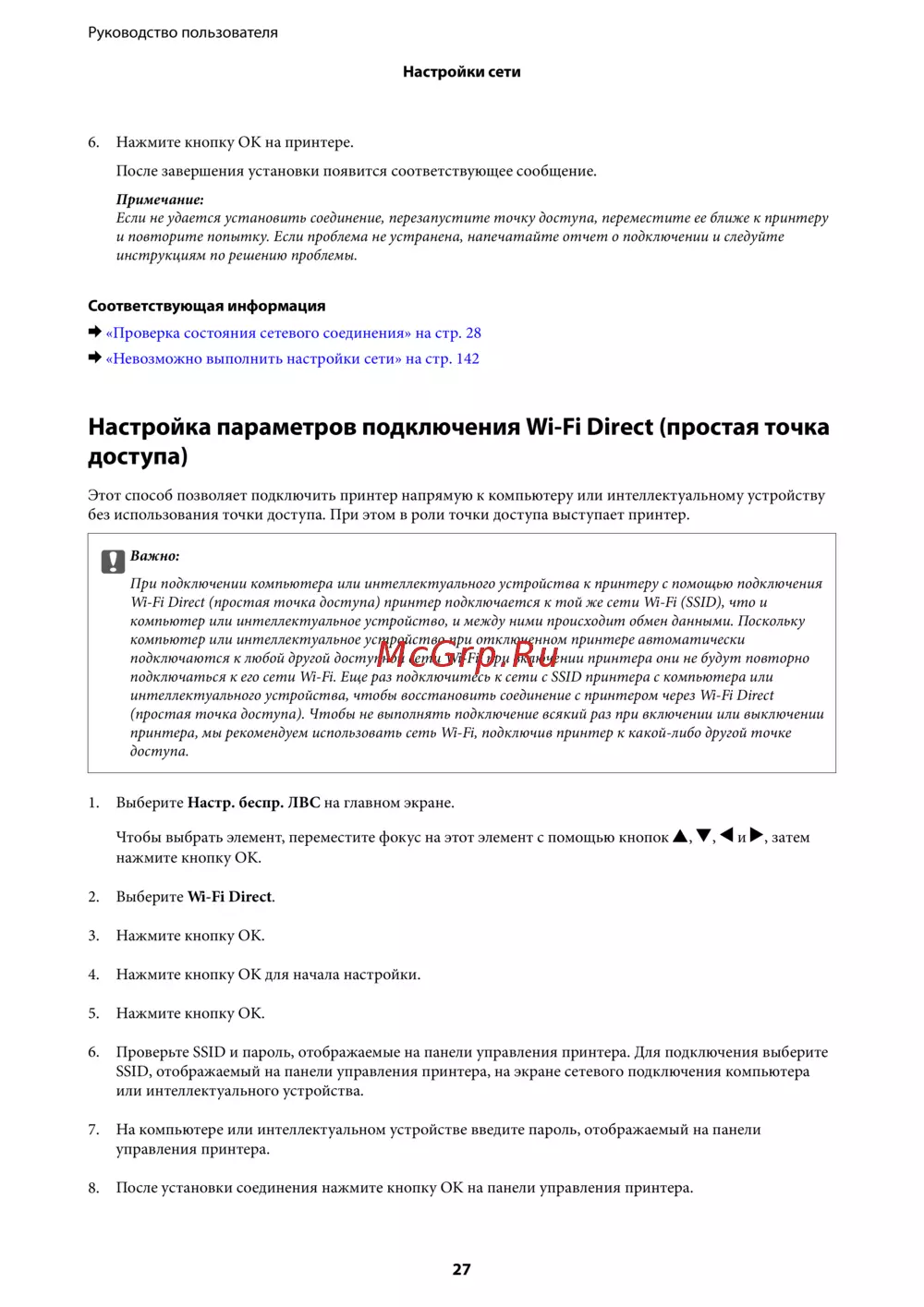 Wi-Fi Direct (простая точка доступа) принтер подключается к той же сети Wi-Fi (SSID), что и
