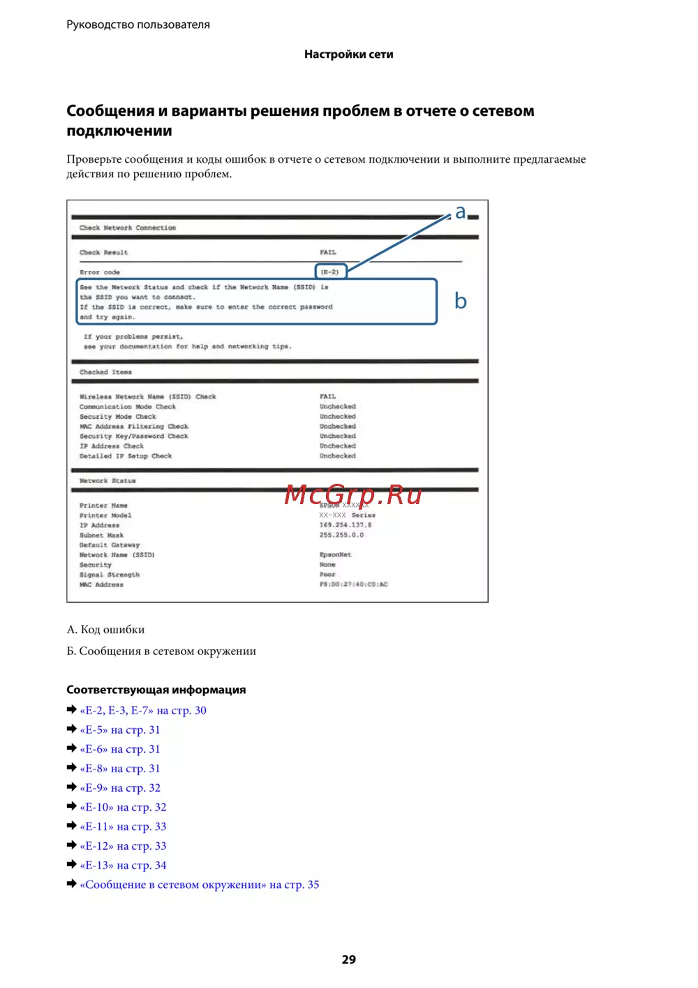 - Сообщения и варианты решения проблем в отчете о сетевом подключении p.29
